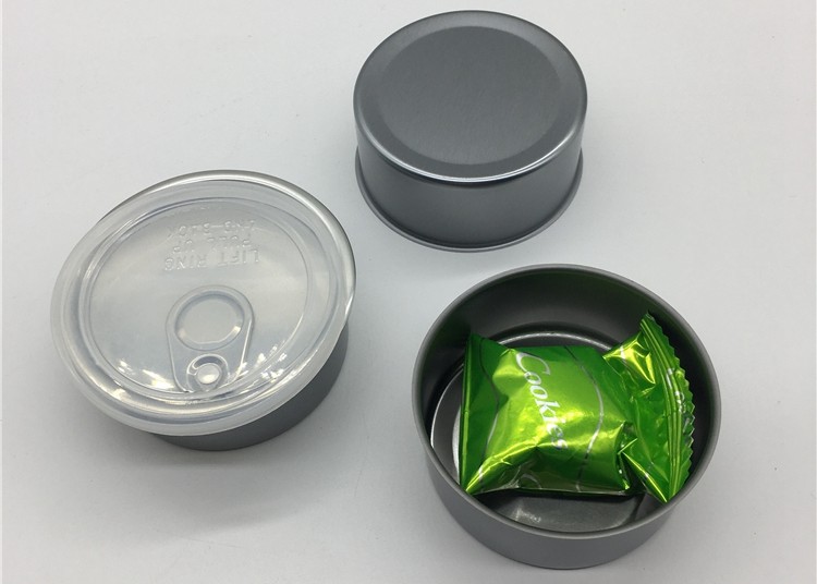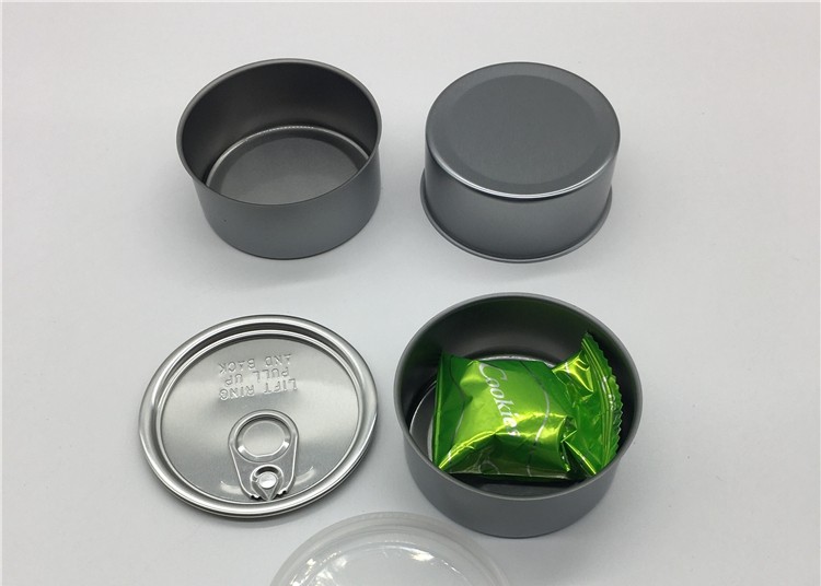Este diseño de la lata del tirón del anillo ampliamente utilizado para la comida enlatada que empaqueta como atún, pollo, la carne de vaca, pescados, carne, y flores de las hierbas. El bocado le gusta la comida enlatada etc. de las nueces, de las mentas, del caramelo y del animal doméstico.