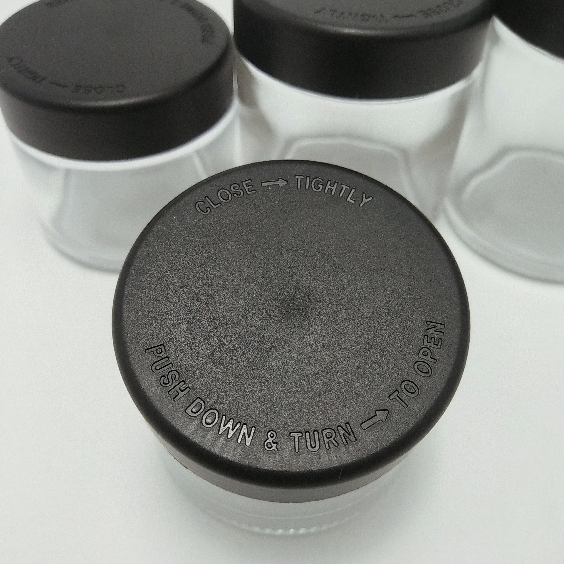 | Resaltar | Tarros cosméticos vacíos con el casquillo a prueba de niños,Tarro de cristal de empaquetado del cáñamo de CBD,Tarro poner crema cosmético resistente del niño |