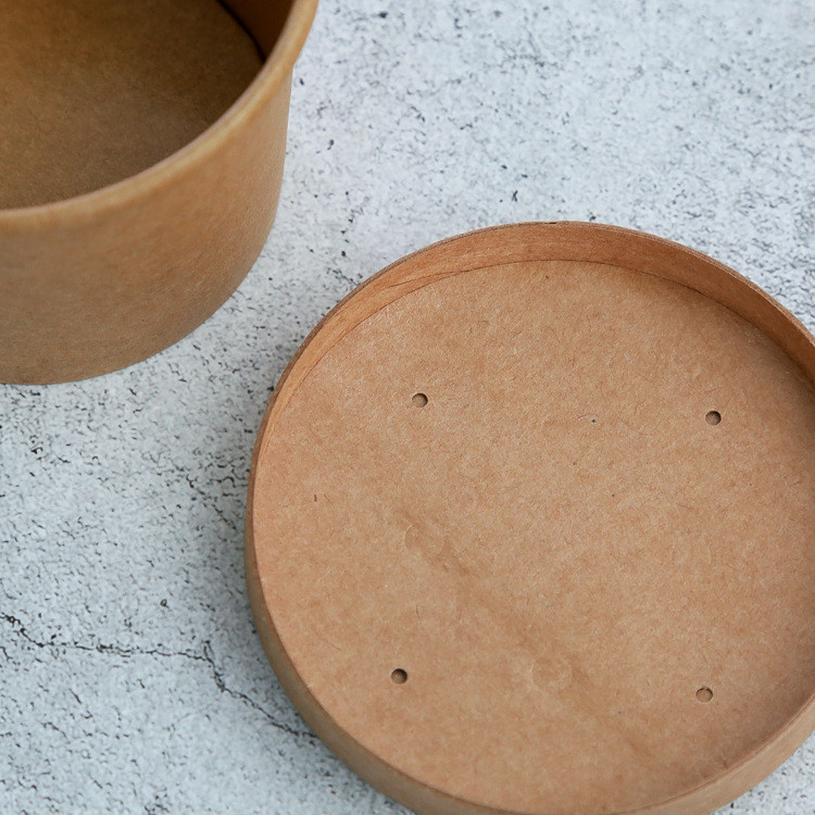 xArtículo | Tazón de sopa de papel kraft biodegradable tazones desechables de la cocina china para llevar | Tapa | Papel kraft + revestimiento de PE / PLA |