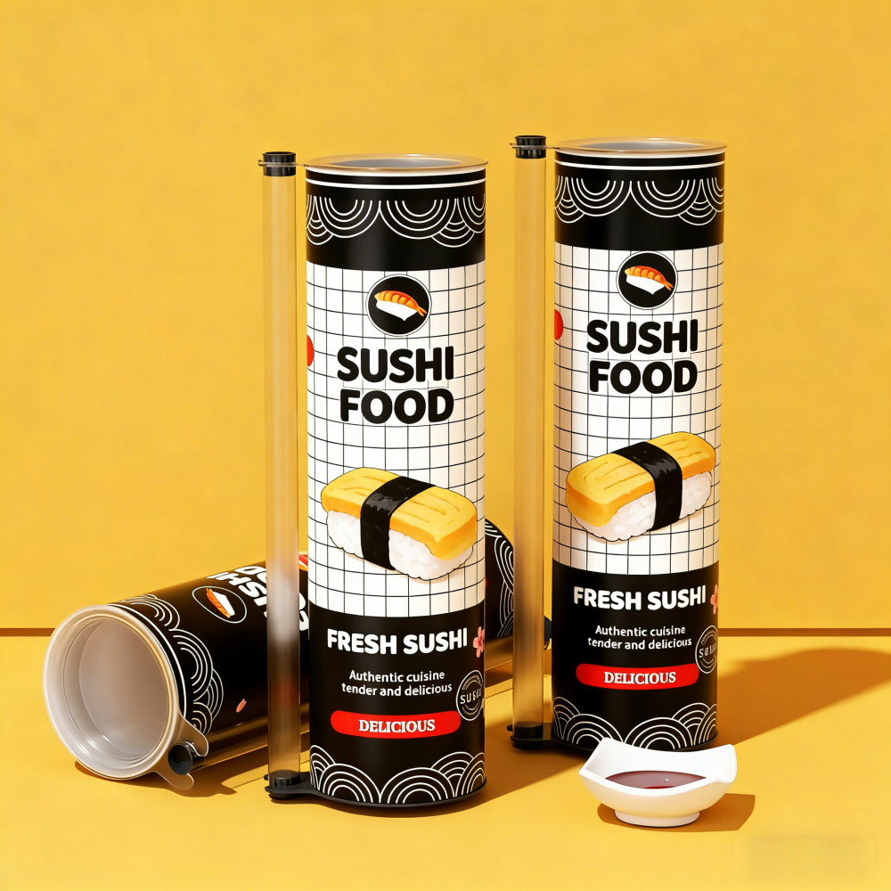 Custom Printed Eco-friendly Food Grade Push up Sushi Paper Tube with Chopsticks Paper Canister Packaging