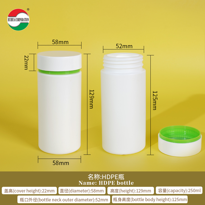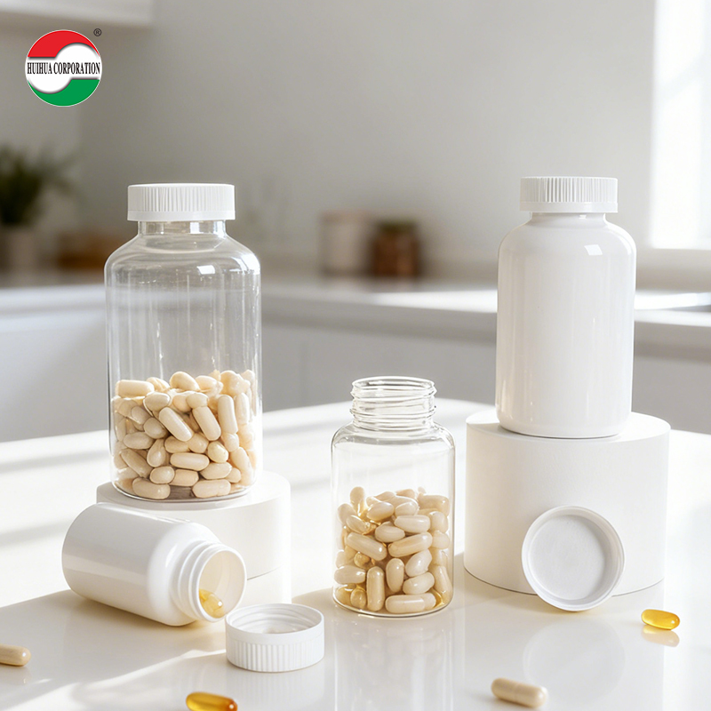 Botellas de plástico para envasado de pastillas, tabletas y cápsulas de HDPE de grado alimenticio con tapa de rosca